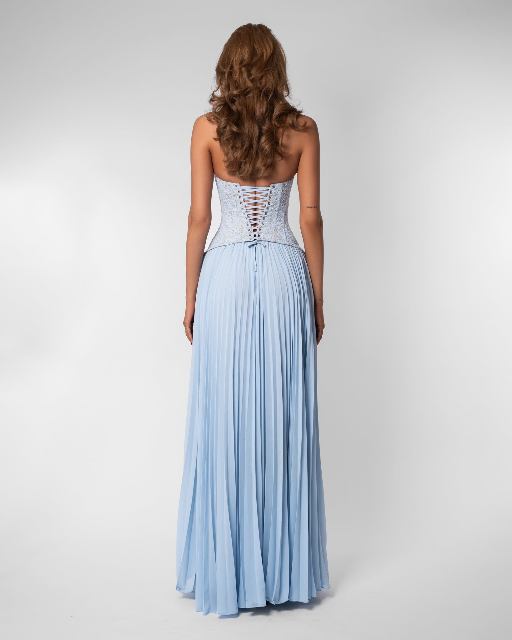 Stylish details – The structured bodice and delicate pleats in the skirt create a refined and feminine appearance.